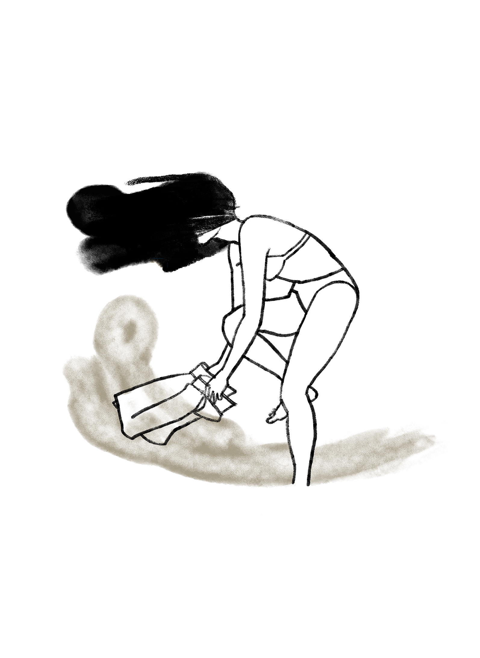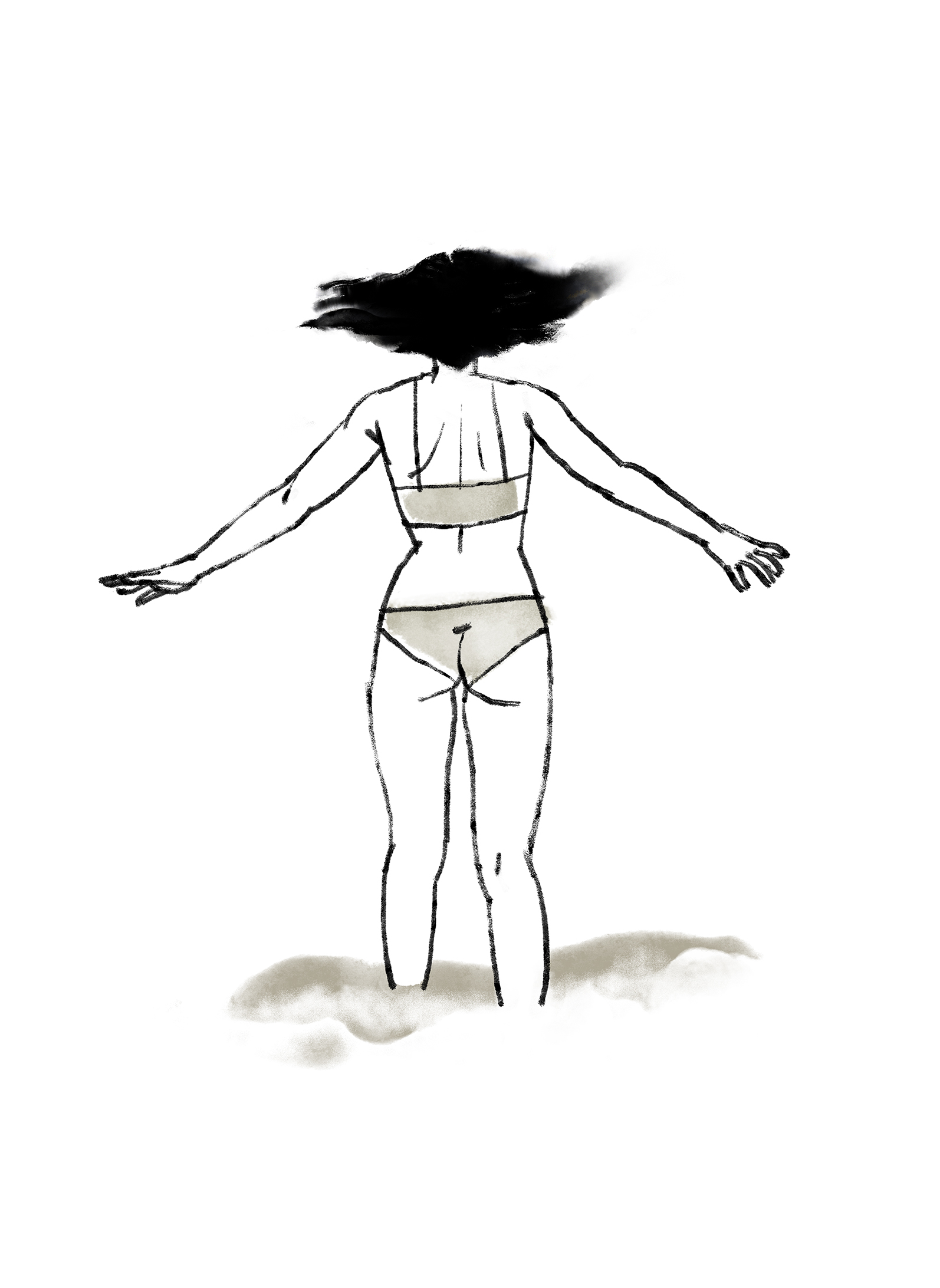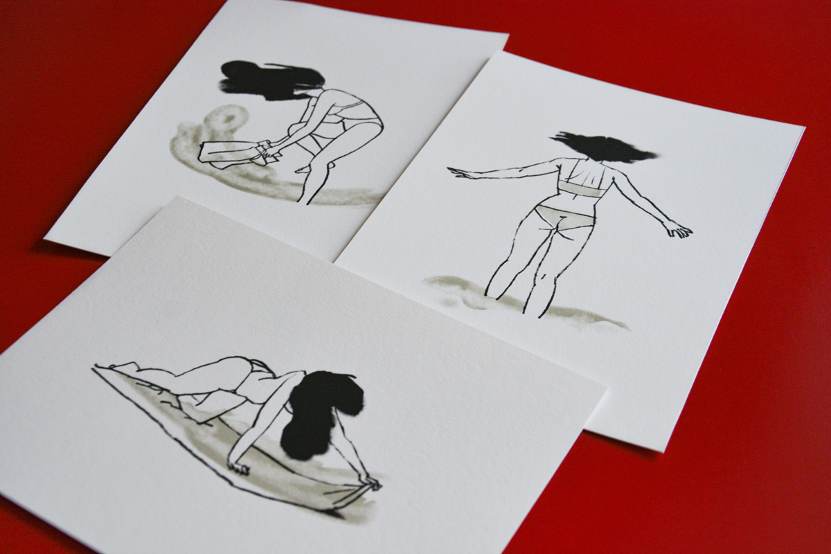 In this set of drawings, three women are trying to relax on the beach while nature has other plans. We, on the other hand, can stay calm with the fond memory of August’s wind in the Greek islands.
